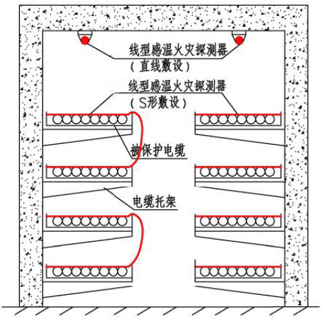 圖5. 線型感溫火災(zāi)探測(cè)器在電纜隧道內(nèi)敷設(shè)示意圖